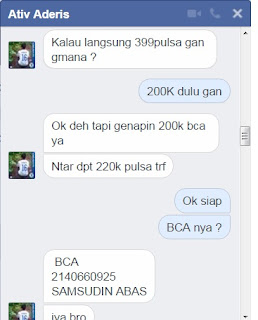 Pelaku hack akun FB orang lain, dia menggunakan akun hack untuk promosi jual beli pulsa transfer.